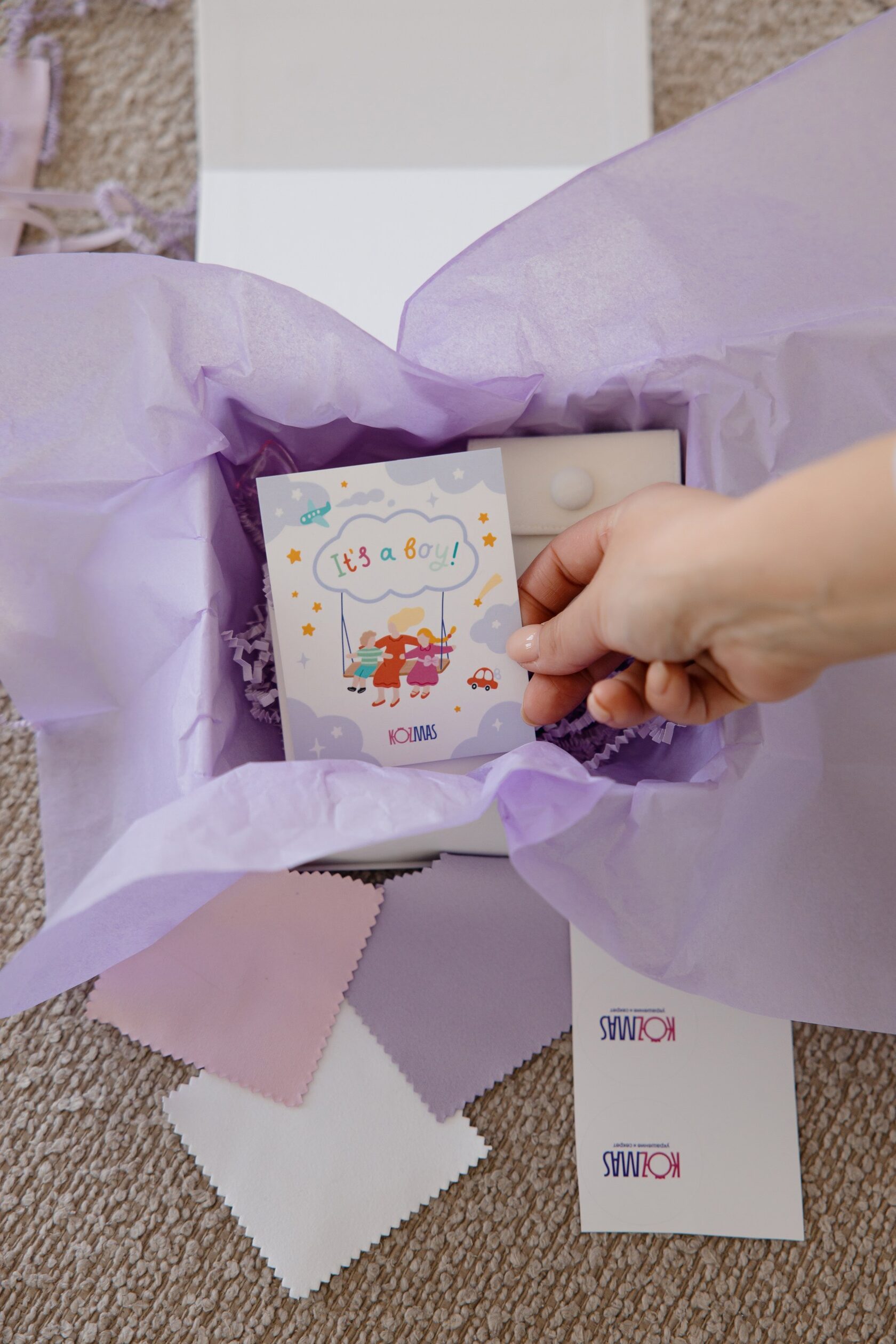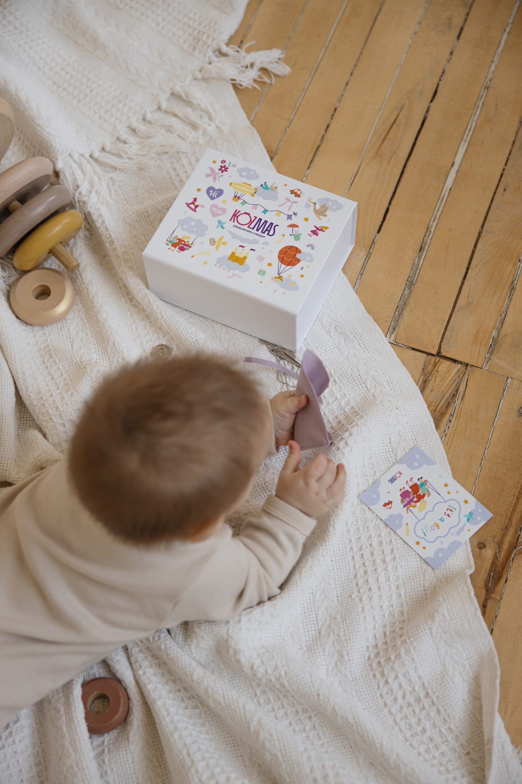 Украшение и секрет мы создавали с душой и большой любовью, зная, как важно семье прожить и запомнить тёплые моменты беременности и родительства. Наша старшая дочь Валентина - художница и ее наброски легли в основу обложки боксов, которые она сделала специально для проекта в ожидании появления на свет младшего братика.